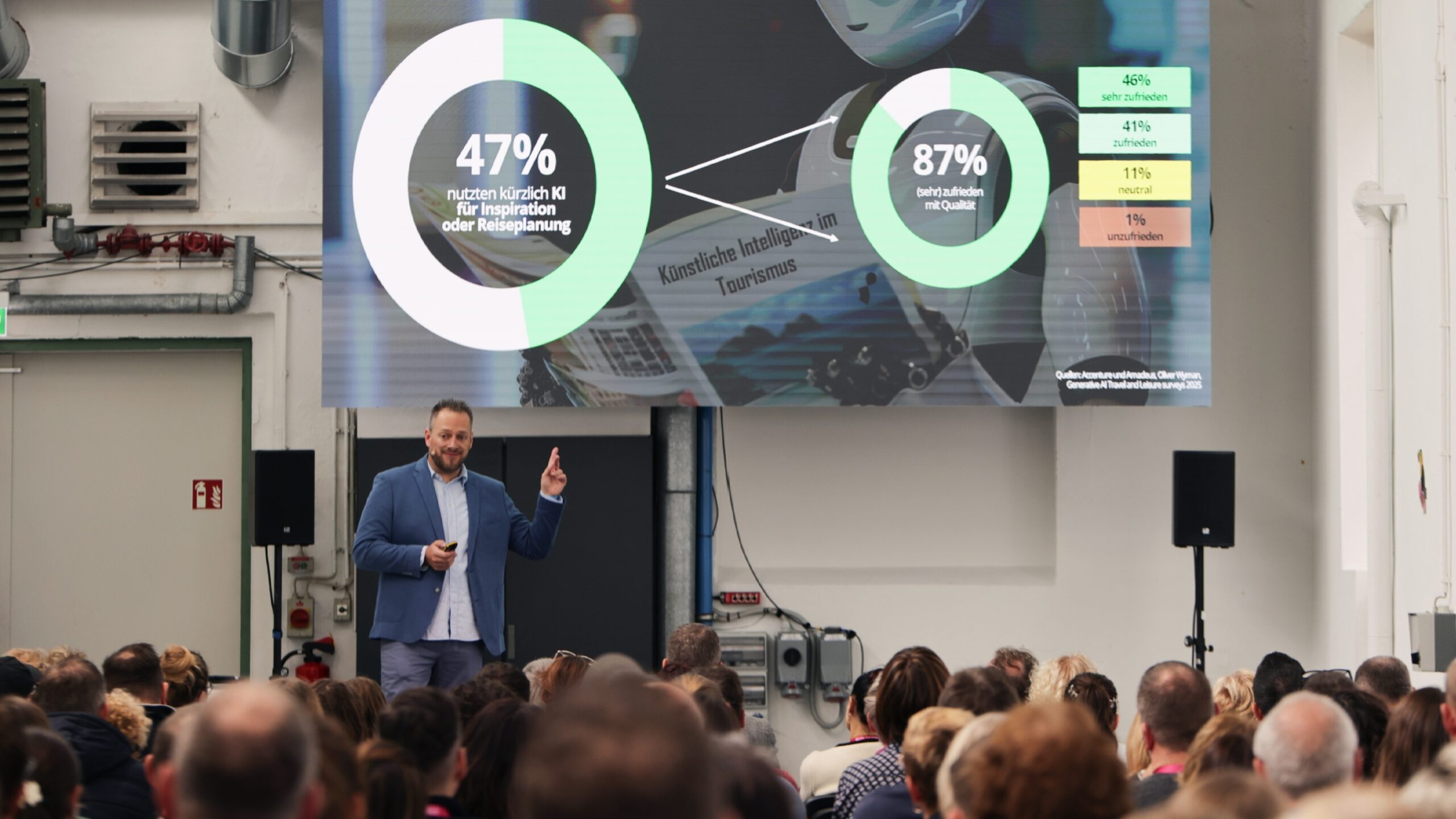 Künstliche Intelligenz sorgt auch im Tourismus für viele Verwerfungen. Es ist wichtig, sich vertrauensvoll mit Sorgen und Berührungsängsten auseinanderzusetzen, aber gleichermaßen motiviert und positiv die vielen neuen Möglichkeiten aufzuzeigen. KI ist nicht nur mächtiges Werkzeug für das touristische Marketing - der Wandel wird alle Fachbereiche und Aufgabengebiete berühren. Wir müssen daher unsere Teams frühzeitig fit bekommen und intern Know-How aufbauen.